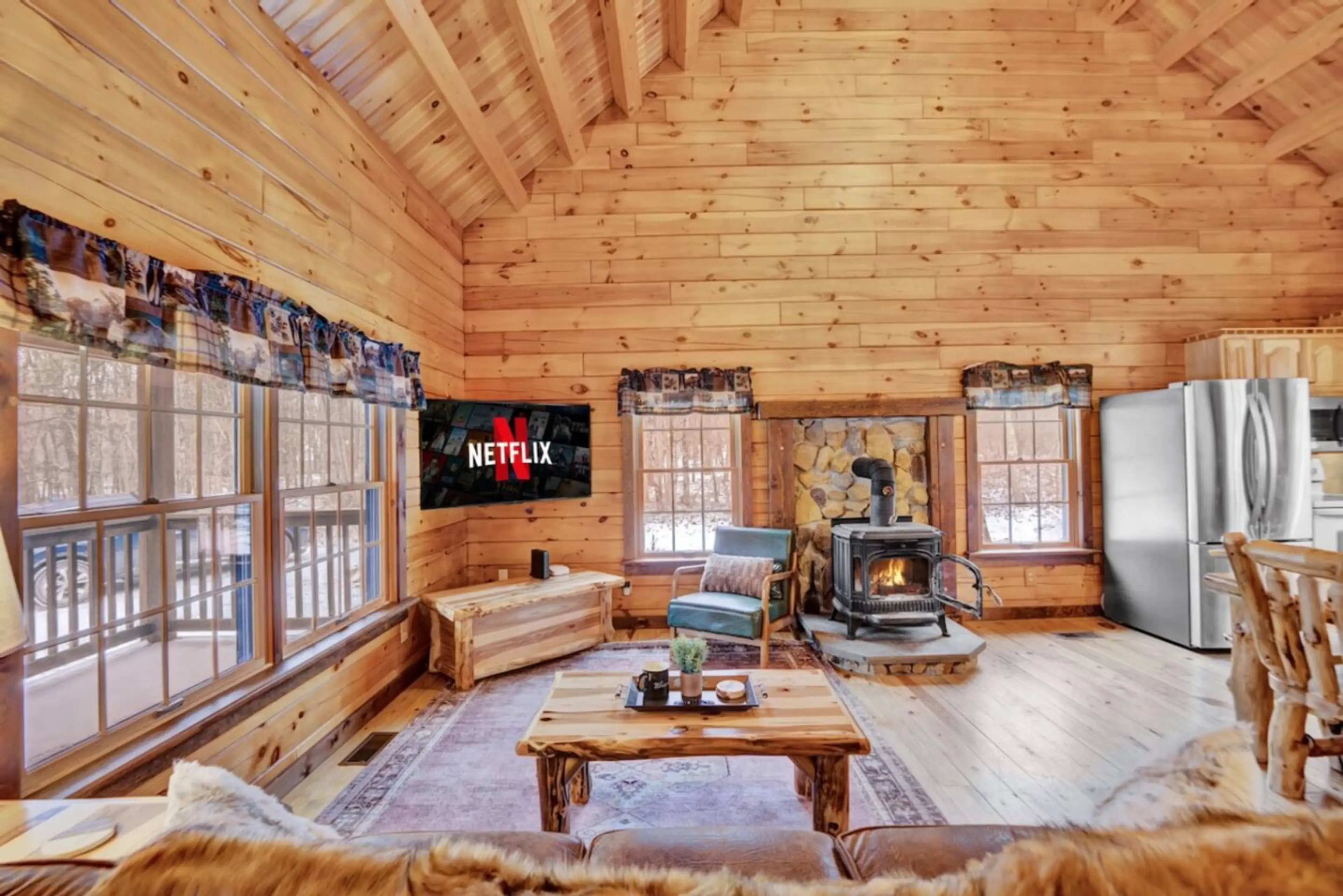 Reconnect with nature and one another at the Lovers Lodge. ~ Jacuzzi in loft ~ Hot Tub outdoors ~ Authentic Log Cabin ~ Premium Log Furniture ~ Pet friendly ~ 15 minutes to the Skiing ~ 22 minutes to Downtown Jim Thorpe ~ Perfect for a couple Also close to many other Pocono attractions like waterfa...