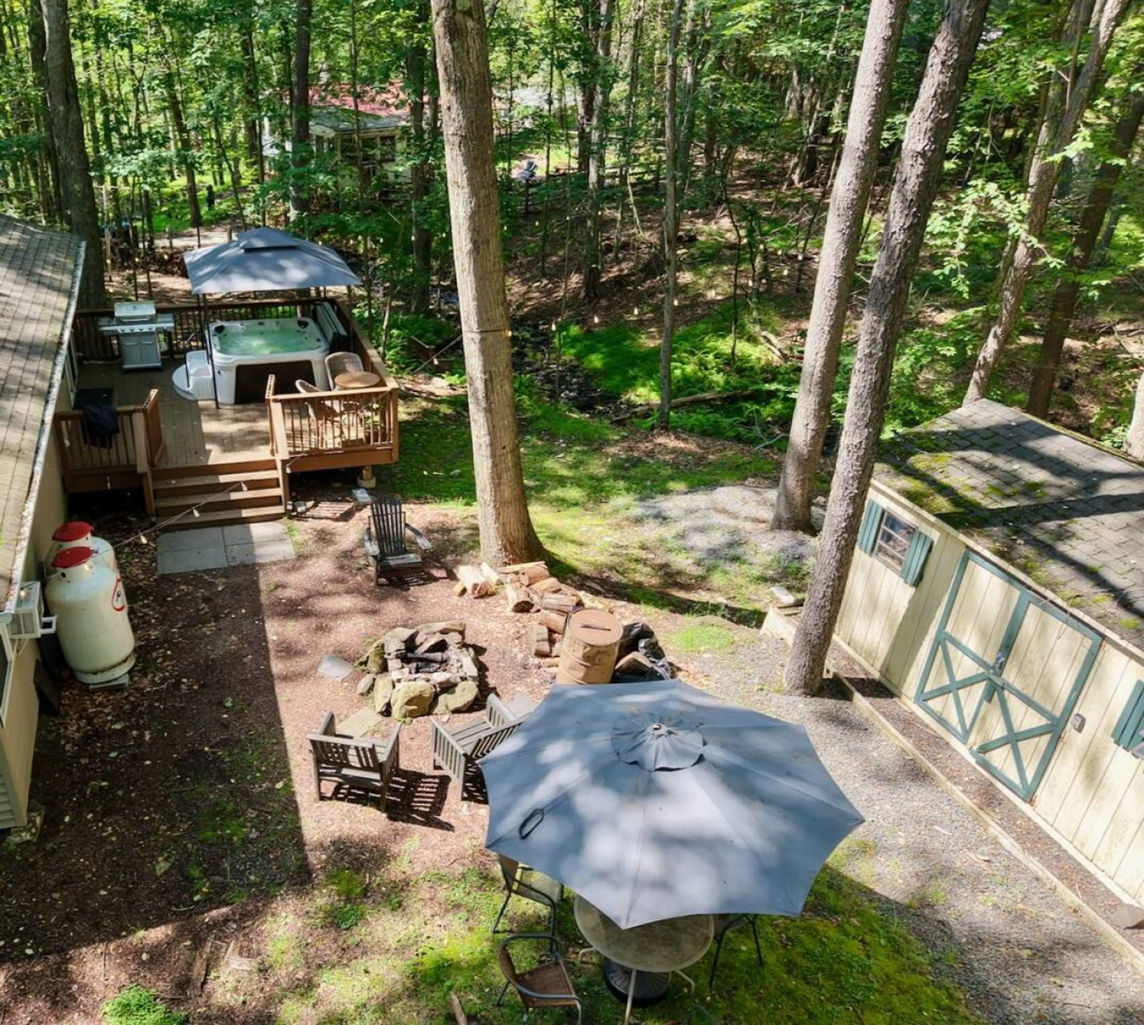 Perfect location, hot tub was nice with the tv outside! Deer were in the front yard and all in the back yard! Bummer there was a burn ban the fire out are was nice with hammock.