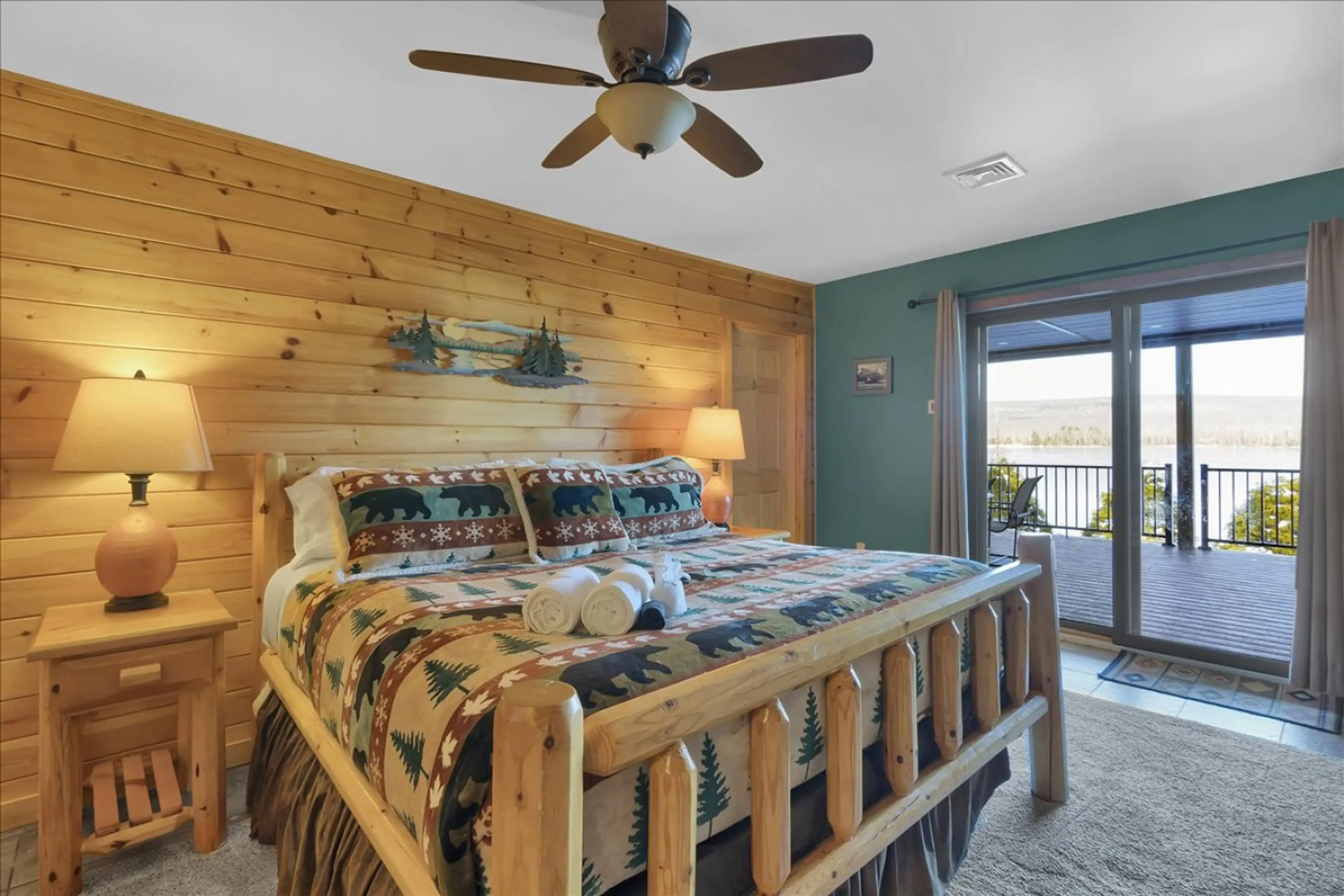 Lakeside Ember Lodge is a true lakefront chalet with 3500 sqft of indoor living space on private Lake of Four Seasons with a private sandy beach, private dock, lakeside firepit and electric pontoon boat in season. Enjoy a brand-new 2-story 1100 sqft Trex deck with hot tub and grills, two game rooms,...
