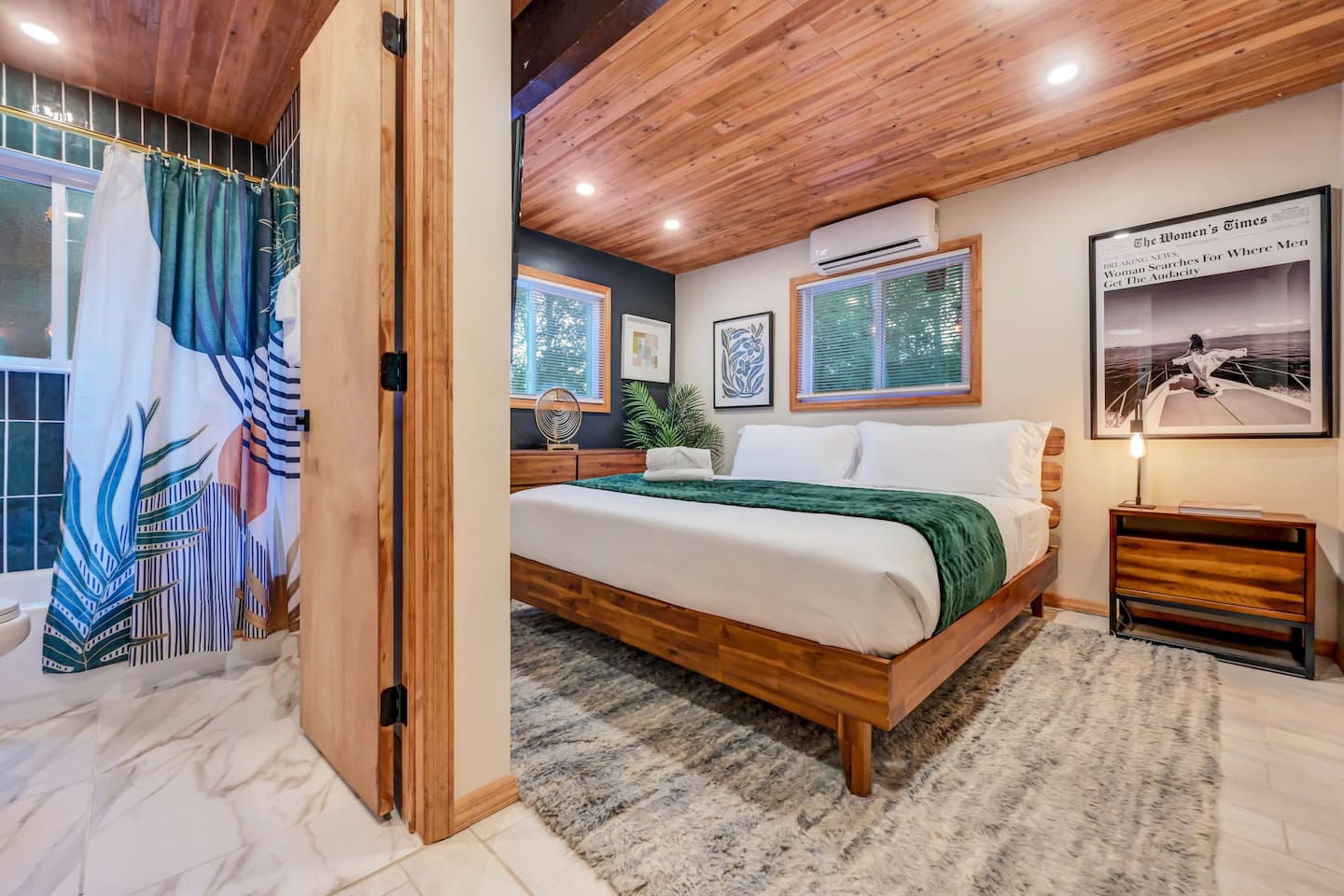 A high-design Pocono chalet built for groups who want luxury, selfies, and unforgettable amenities, all within minutes of top attractions. -3 king bedrooms, 2.5 spa-style baths, sleeps up to 9 -Detached game room with pool table, arcade, theater vibe -Inflatable hot tub under pergola, fire pit, larg...